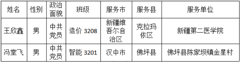 根据团省委下发《2023年陕西省大学生志愿服务西部计划志愿者实施方案》要求,按照公正、公平、公开、择优原则,经过学生个人申请,校团委组织笔试、面试等环节,目前已完成2023年我校西部计划宣传招募工作,现将拟录取的名单公示如下: