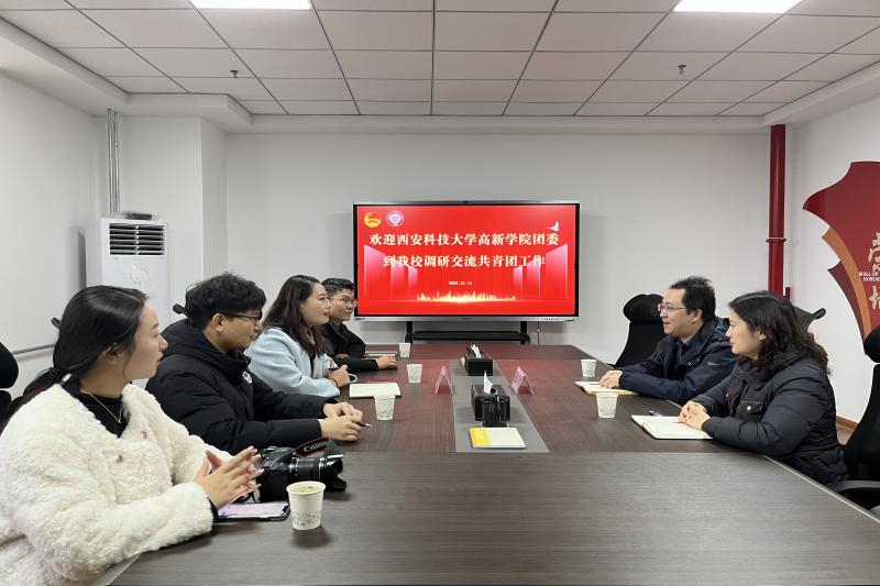 12月14日,西安科技大学高新学院团委书记滕婵娟一行4人到我校进行共青团工作调研交流。校团委书记张钊陪同西安科技大学高新学院团委一行参观了学校国防展览馆、社团活动中心及博远楼四层小剧场。