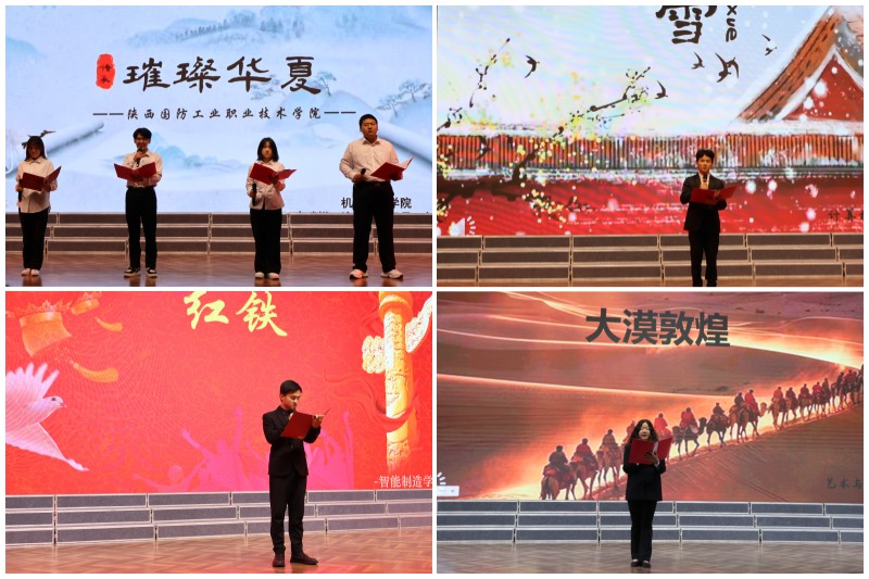 此次活动通过初步选拔,各二级分院共有40余支队伍参加了初赛。经过激烈的角逐,10支队伍进入决赛环节。比赛现场,《月光下的中国》以磅礴的气势,歌咏祖国山河雄伟壮丽,表达爱国情怀;《不朽》,让观众们感受到不朽的英烈,在苍松翠柏间传唱,不朽的灵魂,在血液里奔流的声响;在《我用残存的手掌》中,表达对祖国的深深眷恋和热爱......选手们以经典诗文作品进行朗诵再创作,通过刚劲有力的诵读、抑扬顿挫的声调、满怀激情的表演,将字里行间中的情感抒发得淋漓尽致,用声音传递中华文化的魅力,歌颂祖国的崭新篇章。