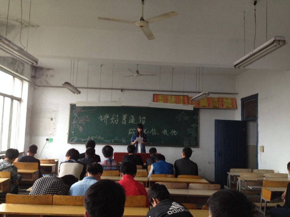 这次活动开展于2014年9月28日星期五,建筑与热能工程学院全体学生以班级为单位开展本次活动,每个班级都能以不同的方式围绕主题《说好普通话,圆梦你我他》来表达对活动的理解,班级里的前后黑板也设计的很新颖,表达出他们班级的特色,主持人的精彩,解说员的热情,让我们从实际中看到了说好普通话的重要。