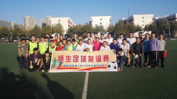 11月5日下午,由机电学院党总支书记殷兴光、宣传处处长杨建伟等老师组成的教师代表队和机电工程学院学生代表队在北校区足球场上进行了一场师生足球友谊赛。