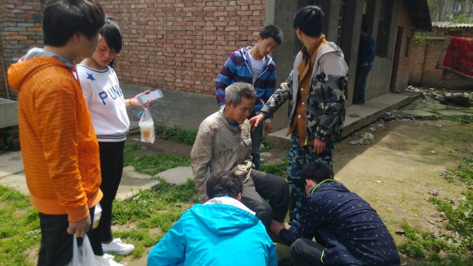 4月9日,团委志愿服务队的同学们带着水果、快餐又一次来到余下某社区看望孤寡老人刘伯伯。