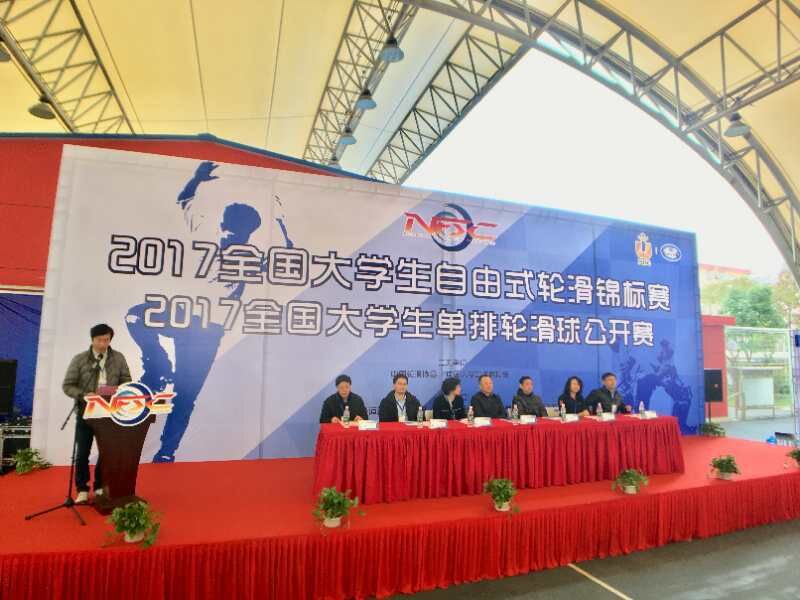 我校于2017年12月1日至12月3日在上海体育学院参加2017年全国大学生自由式轮滑锦标赛,本次比赛由中国大学生体育协会、中国轮滑协会主办,由上海轮滑运动协会、上海体育学院承办。本次大赛吸引了全国各地110余所高校近1000人参加。本次比赛由体育部长王茂利领队,石霞教练带领3名队员参加比赛,我笑学生王天赐获得了男子组花式刹停亚军,此次比赛给学生提供了施展才华、放飞自我的舞台,充分展现了我院轮滑代表队的风采。