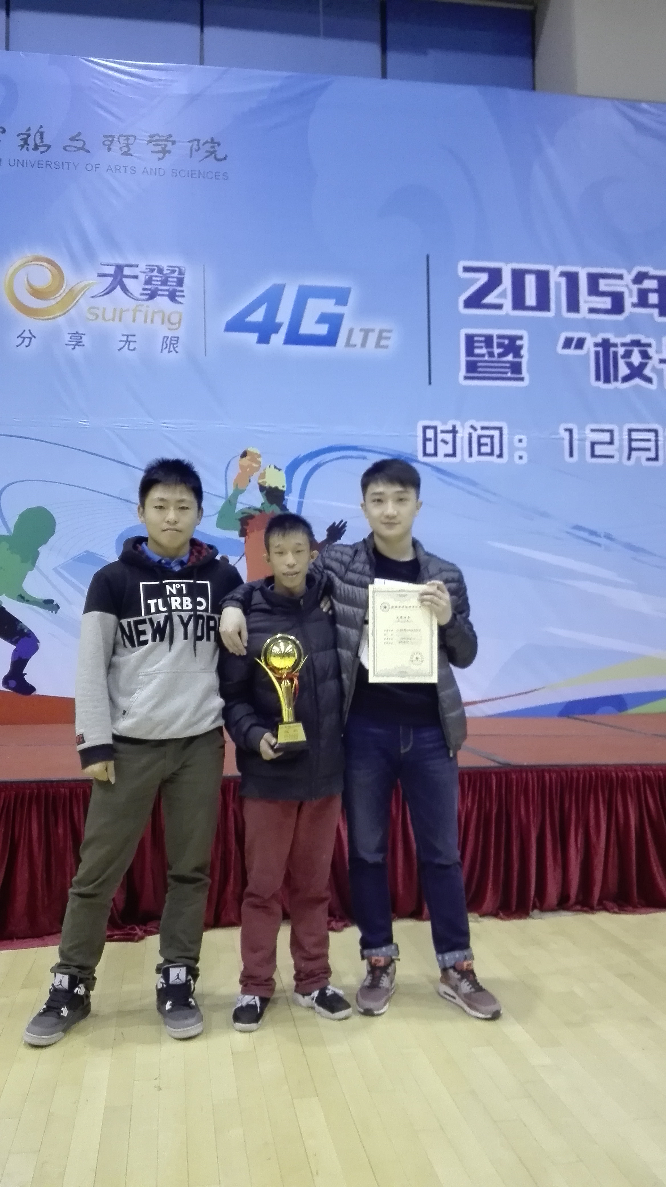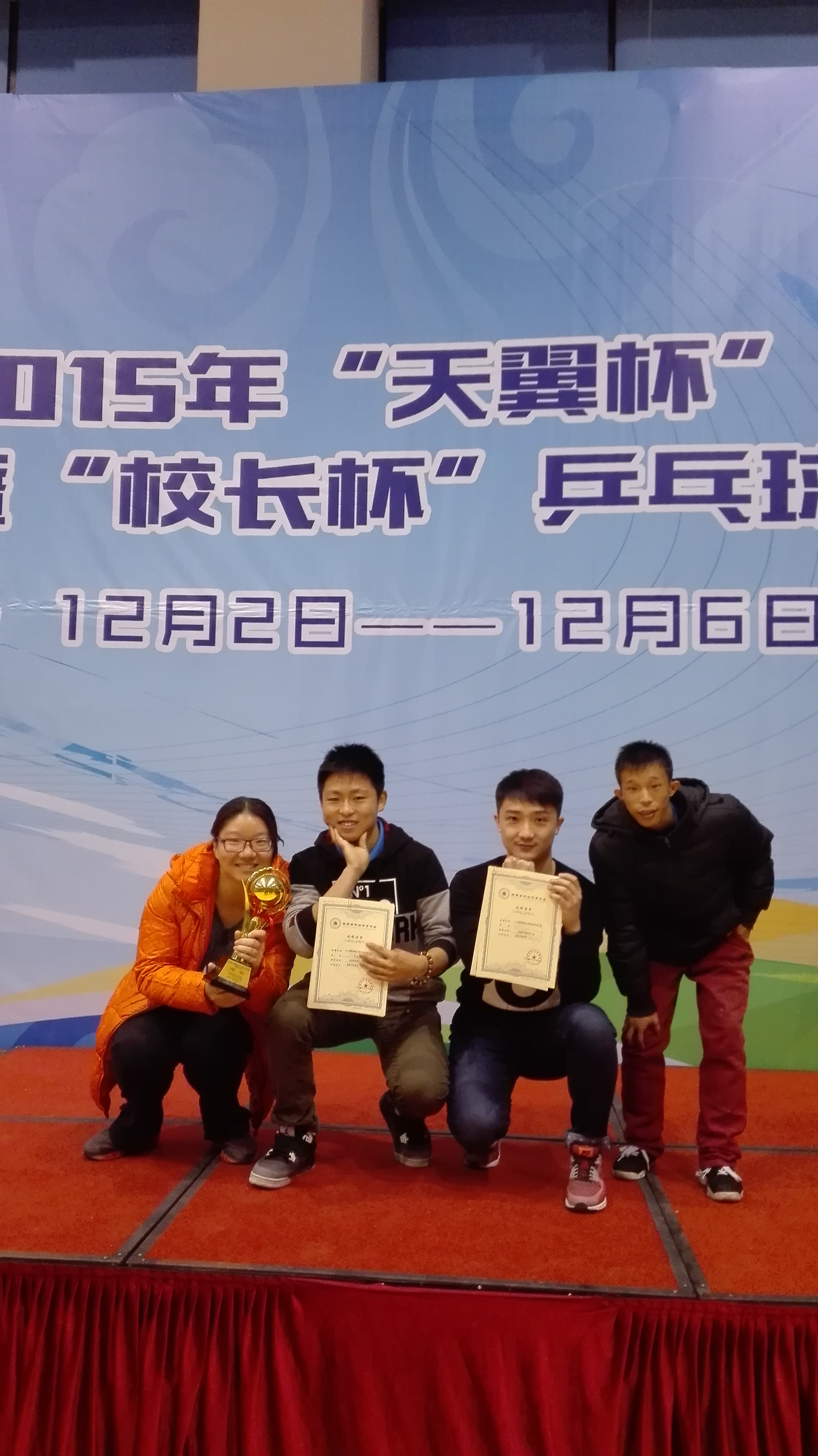 我院乒乓球代表队由王茂利、石霞两位老师带队参加了比赛,参赛男、女运动员共15名。在三天的比赛中,队员们拼搏进取,过关斩将,在四个项目的比赛中获得佳绩:(1)男子团体冠军:甄德寿,魏朔晗,尤家宝;(2)女子团体第五名:郭瑞,庄圆,任斌,王明静;(3)女子单打第三名:庄园;(4)男子单打第五名:李翔;(5)男子双打第五名:魏朔晗,李春辉;(6)混合双打第五名:尤家宝,任斌;(7)混合双打第五名:李翔,孙文菲。为我院争得了荣誉。