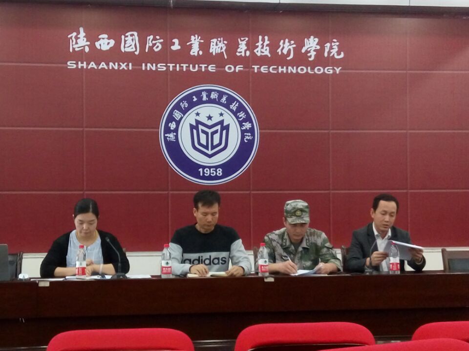 会议由体育部办公室主任李娟老师主持。会上李娟老师首先组织参会人员学习了教导员工作职责,并对教导员工作提出要求;学生处副处长潘冬老师组织参会人员学习了辅导员工作职责,并传达了省教育厅、省军区战备建设局关于辅导员军训期间全程跟训的文件精神及要求;军训团团长张鸿凯宣读了军训教官管理规定,要求教官要严明纪律,服从管理、科学施训;最后体育部部长王茂利老师发表讲话,对本次承训部队:陕西陆军预备役高射炮兵师第三团教导队49名教官表示热烈欢迎,同时就军训期间的安全问题,管理问题,教导员、辅导员、军训教官之间的相互配合及做好军训工作等问题进行了强调。