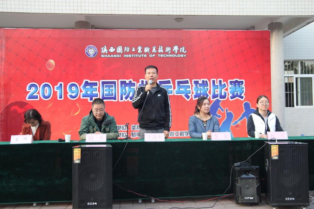 20191029日下午,由由体育部主办,机电工程学院、数控工程学院承办举办的2019年“国防杯”乒乓球比赛圆满结束,本次大赛以促进各院部间交流为宗旨,丰富学生们的校园生活为目的,以比赛的形式为学生们提供展现风采的舞台。全校11个院部共200多名同学纷纷以极大的热情参与到此次活动中。出席本次活动的嘉宾有:数控工程学院党总支书记赵熹老师;体育部部长王茂利老师;数控工程学院学生科科长王娜老师;体育部办公室主任李娟老师;裁判长石霞老师。