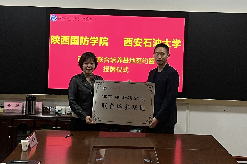 会中,两所学校参会人员在实习生培养、体育竞赛指导、双师型教师队伍建设、学术科研项目等多方面进行了深入交流。军事体育部部长王茂利作为我校代表,与西安石油大学签订了研究生联合培养基地协议,石油大学体育系主任李寿邦向我校授牌、向军事体育部部长王茂利教授颁发客座教授聘书。
