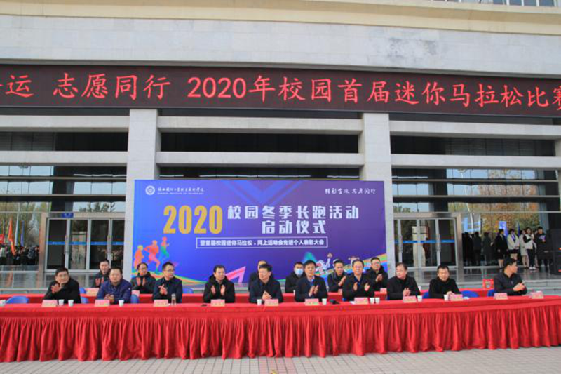 为贯彻落实《关于强化学校体育促进学生身心健康全面发展的意见》、《关于开展全国亿万学生阳光体育冬季长跑活动的通知》文件精神,喜迎“十四运”,我校于12月10日下午,在北校区图书馆前举行我校成功举办2020年校园冬季长跑活动启动仪式暨首届校园迷你马拉松比赛、“网上运动会”先进个人表彰大会。校党委书记张卫平、校长刘敏涵、校党委副书记、纪委书记王明哲;校党委副书记杨聪;副校长张永军;学校党政办、宣传处、新利体育官方网站部、团委、教务处、后勤处、保卫处等部门负责人和各个分院的领导出席了本次大会。大会由军事体育部部长王茂利主持。