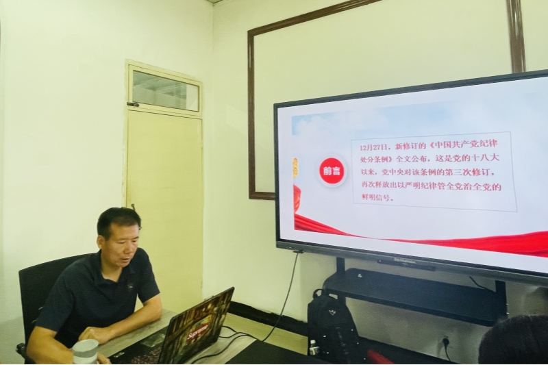 在党课过程中,支部书记王茂利首先强调了党的初心和使命。随后,他结合新修订的《中国共产党纪律处分条例》(后称条例)有哪些突出特点,从三个方面进行了深入浅出地讲解,使党员们对党新修订《条例》有了更加全面深刻的认识。