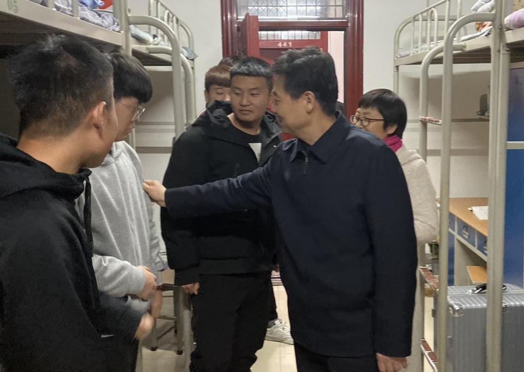 进入冬季,天气骤冷,学校党政领导非常关心学生的生活情况。11月26日晚,校党委书记张卫平代表学校领导班子来到学生宿舍,与学生亲切交流,了解学生的思想动态、学习生活等方面的情况。