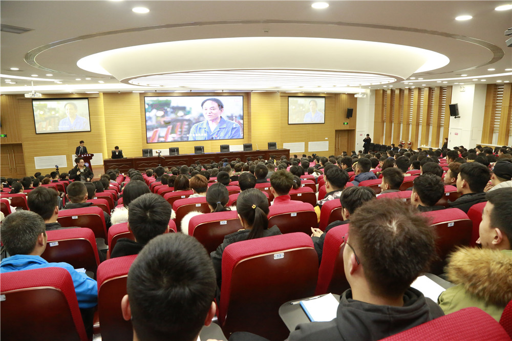 11月26日下午,“弘扬工匠精神,提升职业素养” 2019年大国工匠进校园活动在我院教四报告厅成功举行。国家特级技师、大国工匠、中国航天六院7103厂杨峰以及他的助手、学校机械制造与自动化专业2010届优秀毕业生王建应邀走进我院,以讲座讲解、现场实操展示等形式与我校500余名师生代表面对面交流,诠释和传递工匠精神。本次活动由院团委和党委宣传部联合主办,团委办公室主任陈鹏翔主持活动。