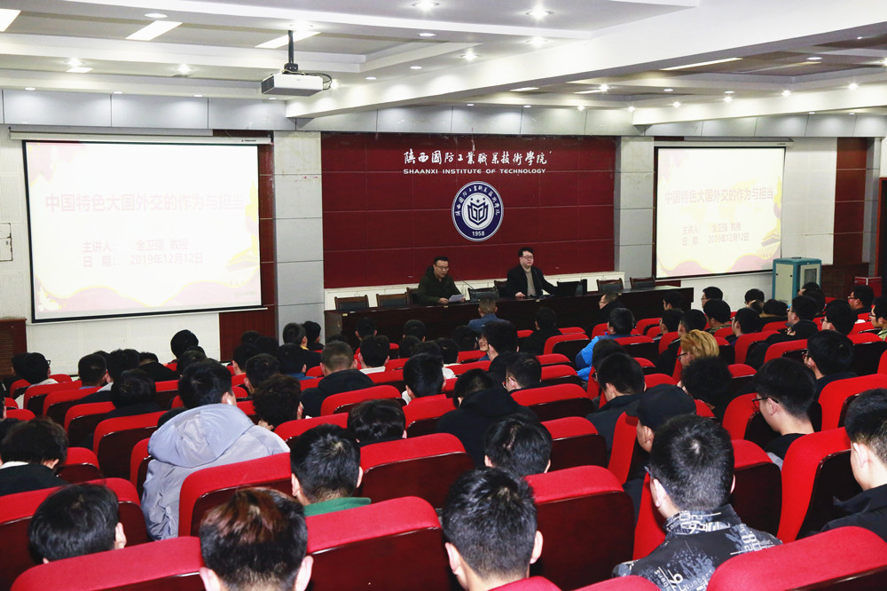 12月12日,机电工程学院在教二报告厅开展形势与政策专题讲座,副院长全卫强教授主讲,机电工程学院全体教师和部分学生代表参加,分院党总支书记姜鑫主持本次专题讲座。