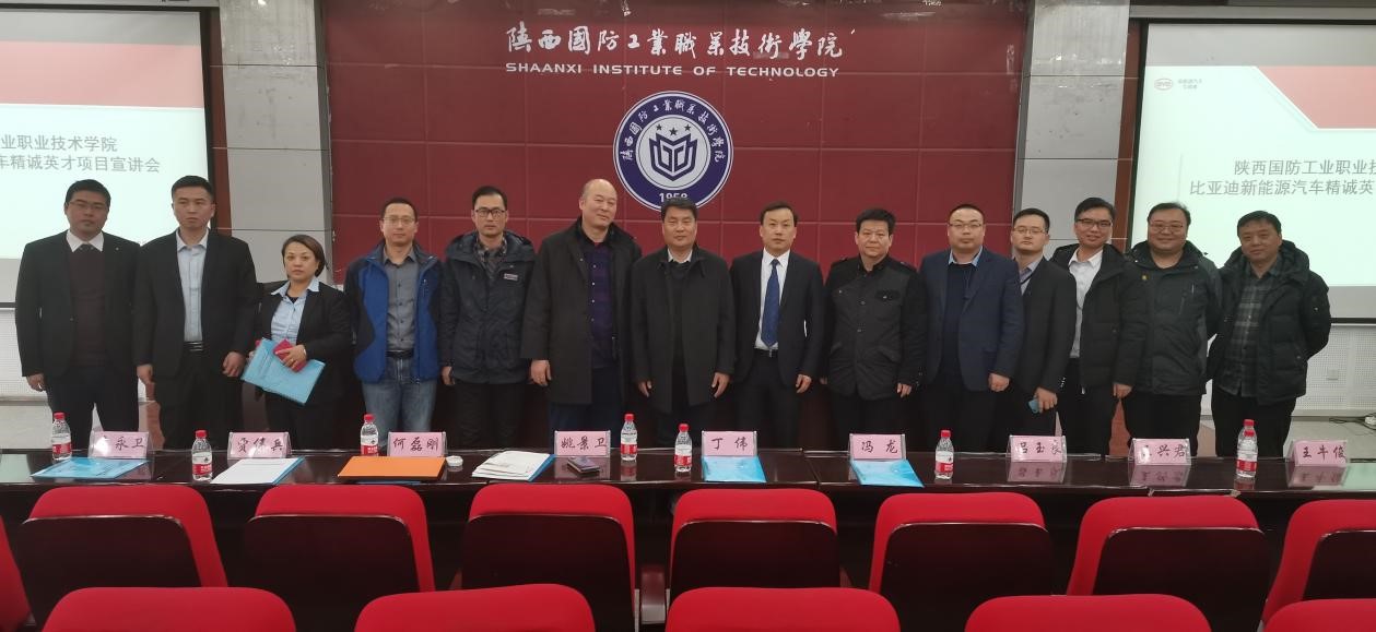 12月11日,国内新能源汽车“巨头”比亚迪公司在我院教二报告厅举行了“2019年比亚迪精诚英才校企合作项目”宣讲会。副院长全卫强出席并讲话,汽车工程学院院长张鑫、书记史朝辉、校企合作处王兴君、学生处王牛俊、比亚迪校企合作项目经理李永卫先生、中车云商培训总监王健先生、比亚迪大区督导贾伟兵先生、西安比亚迪7家销售商代表以及2018级全体新能源班学生参加了活动。宣讲会由汽车工程学院杨萌主持。