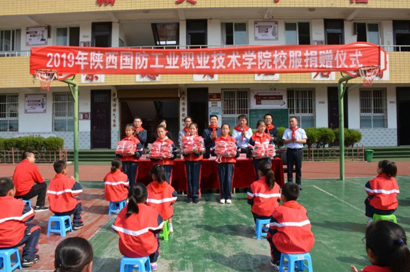 学校为王益区黄堡镇逸夫小学捐赠600套校服