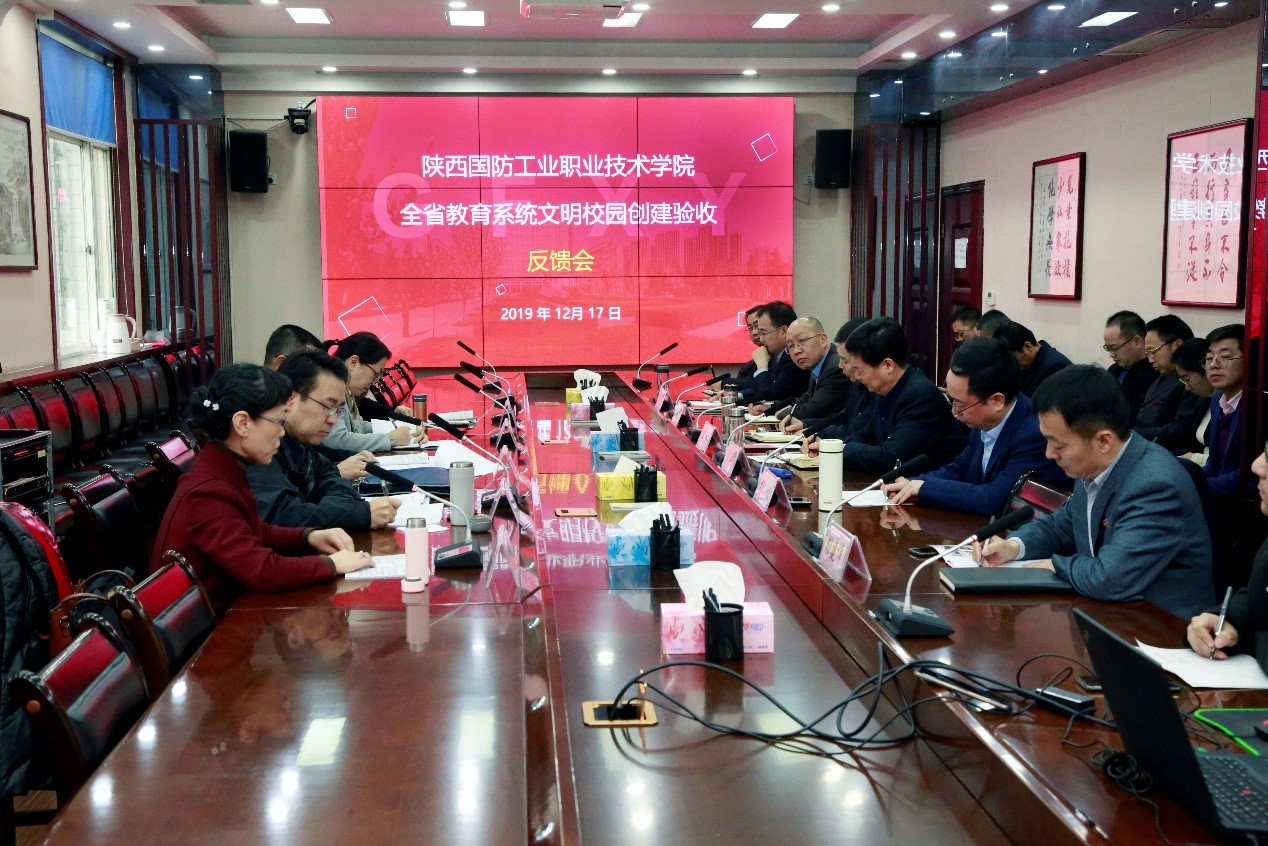 陕西国防职院全省教育系统文明校园创建验收反馈会现场