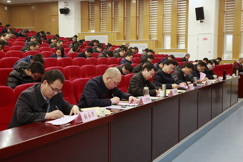 2020年1月3日,我校在北区教四报告厅召开了2019年度述职测评大会,会期为一天。学校领导、全体中层干部及教代会代表共120余人参加了大会。会议由党委副书记杨聪主持。
