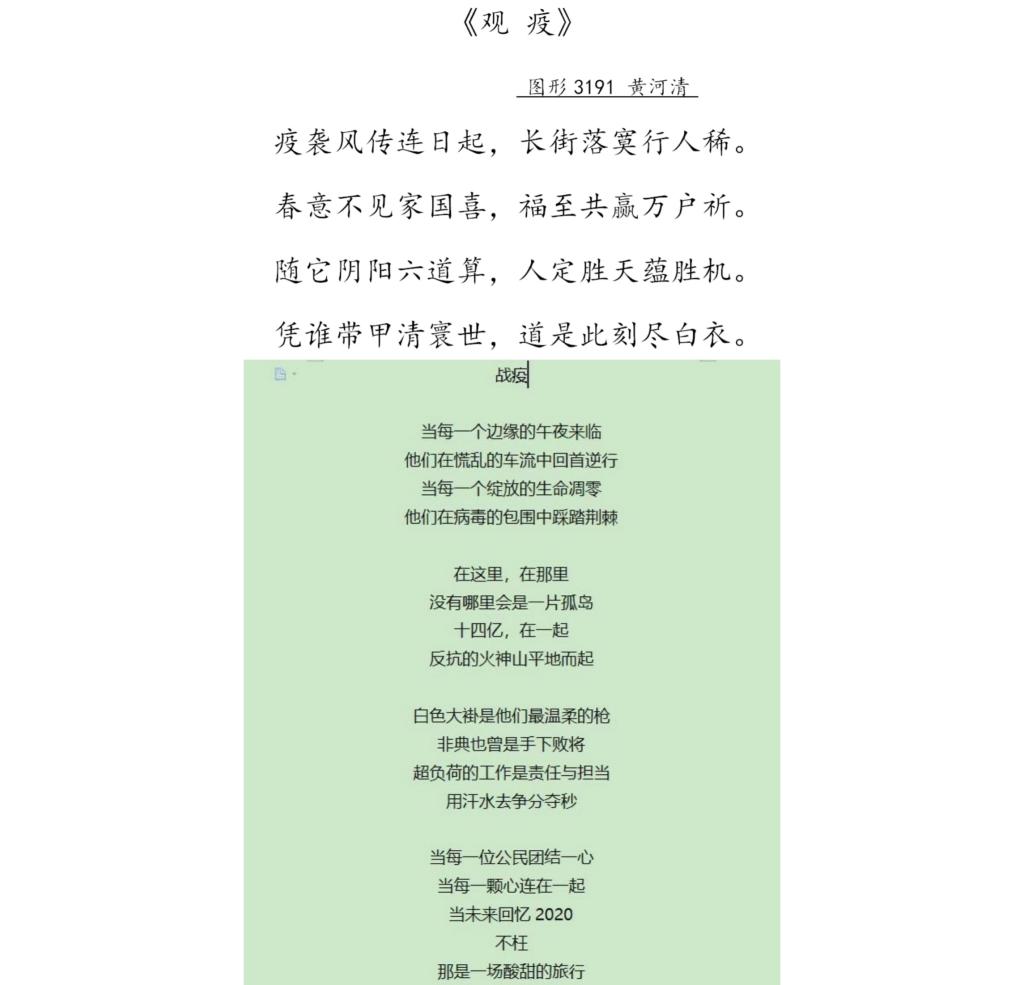 岁末年初,这场猝不及防的新型冠状病毒疫情肆虐而来。“生命重于泰山,疫情就是命令,防控就是责任”。全国人民团结一心,阻击疫情。各地先后启动重大突发公共卫生事件一级响应,在这场没有硝烟的战争中,没有局外人!艺术学院响应学院号召,组织全院学生利用专业优势积极开展关于“众志成城 抗击疫情——我们艺起抗疫情!”主题宣传活动,助力打赢疫情防控阻击战。同学们第一时间以他们的方式参与到这场战“疫”中,通过制作手抄报,漫画、海报、歌曲、书法、诗歌、剪纸等形式,凝聚人心,增强信心,传递正能量,传播正确防控知识,讴歌防控英雄,为全院疫情防控工作助力加油。
