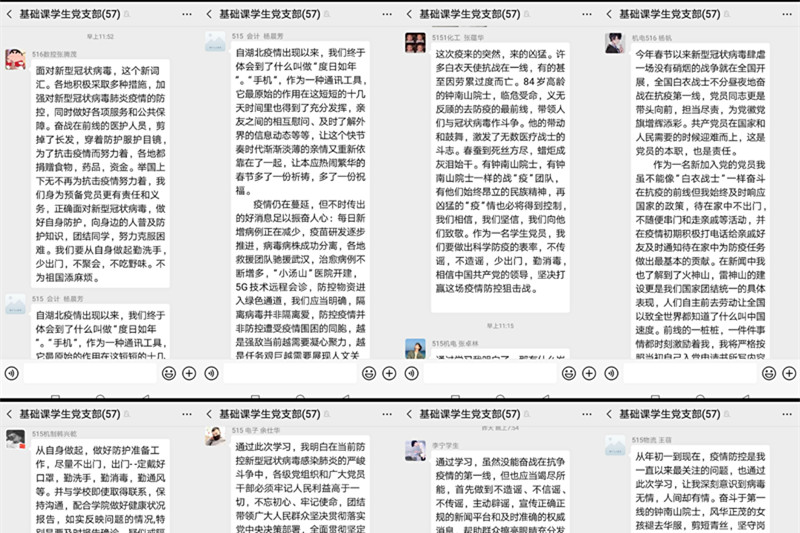 全体学生党员在家中使用“钉钉”软件,Ipad 等手段认真学习了习近平总书记《在中央政治局常委会会议研究应对新型冠状病毒肺炎疫情工作时的讲话》《你的样子》《习近平讲述的故事——战“疫”必胜》,微视频《武汉十四日——英雄的城市》《你定能过关》等内容。