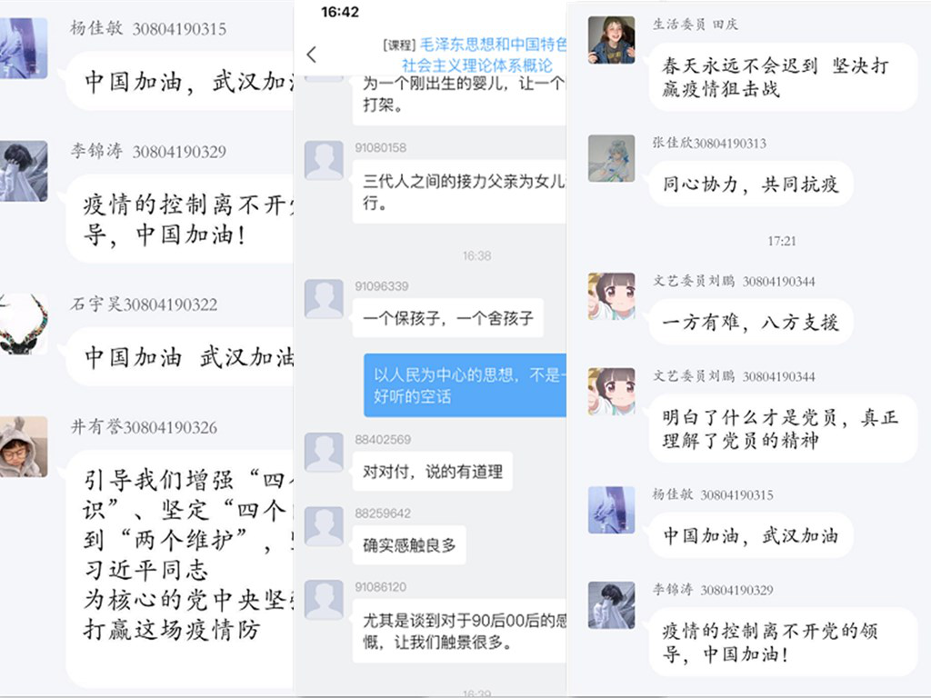 马克思主义学院常务副院长吴娟表示,在全民抗疫的特殊时期,社科司和人民网组织四位教授为我们上了一堂精彩绝伦的思政大课。他们分别从不同的角度分析了本次抗疫战争,理论深刻,生动感人。这次疫情大考中,在中国共产党的领导下,中央全面部署、地方快速调遣、医护八方支援、党员奋勇向前、人民全力配合……中国的疫情防控实现了从决策到执行、从中央到地方的无缝衔接,用灵活高效和精准施策,铺设了一张从中央到社区和农村的疫情防控网络,与病毒展开争分夺秒的斗争,有力保障了人民群众生命安全与身体健康。通过这次疫情,我们更深刻地看到了中国制度的优越性;看到了中国共产党的勇敢担当;看到了中国高效的治理能力;看到了中国人民越挫越勇的民族精神;看到了中国人民的爱国情怀;也看到了“90后”、“00后”的责任担当……事实证明,中国的社会主义制度优势已经转化为高效的治理能力。坚持中国共产党领导是中国特色社会主义最本质的特征,是中国特色社会主义制度的最大优势,也是实现中华民族伟大复兴的根本保障。思政课是大学生思想政治教育的主阵地,马院老师要时刻牢记使命,帮助学生学会分析、学会深入思考,通过此次疫情读懂中国,坚定“四个自信、增强“四个意识”,坚持“两个维护”,培养爱国主义精神,树立责任担当意识,将学生培养为“胸有大志、心有大我、肩有大任、行有大德”的有为青年。