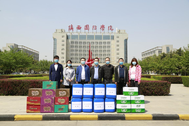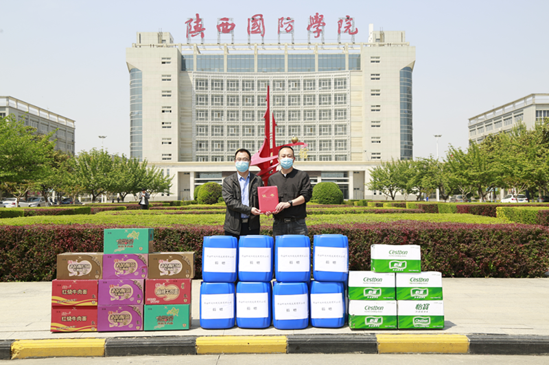 4月24日上午,陕西环太科技有限公司向我校捐赠了10桶25L微酸消毒液、10箱桶装方便面、5箱瓶装饮用水,助力我校疫情防控工作。副院长、疫情防控工作领导小组副组长张永军,以及教务处、电子工程学院和医务所负责同志参加了捐赠活动。