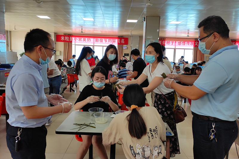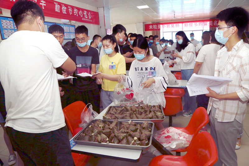 浓浓粽叶香,暖暖端午情。在端午佳节到来之际,为营造浓郁的节日氛围,进一步传承民族文化,彰显传统文化魅力,提升疫情期间学校对学生的人文关怀,6月25日上午9:00,我校学生处与后勤处在食堂举办了“浓情端午,暖粽飘香”端午节活动。本次活动分为包粽子和领取“暖心粽”两个环节,近300余名在校学生参与了此次活动,3700余名在校学生享受到了学校发放的爱心福利。