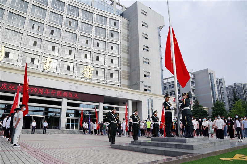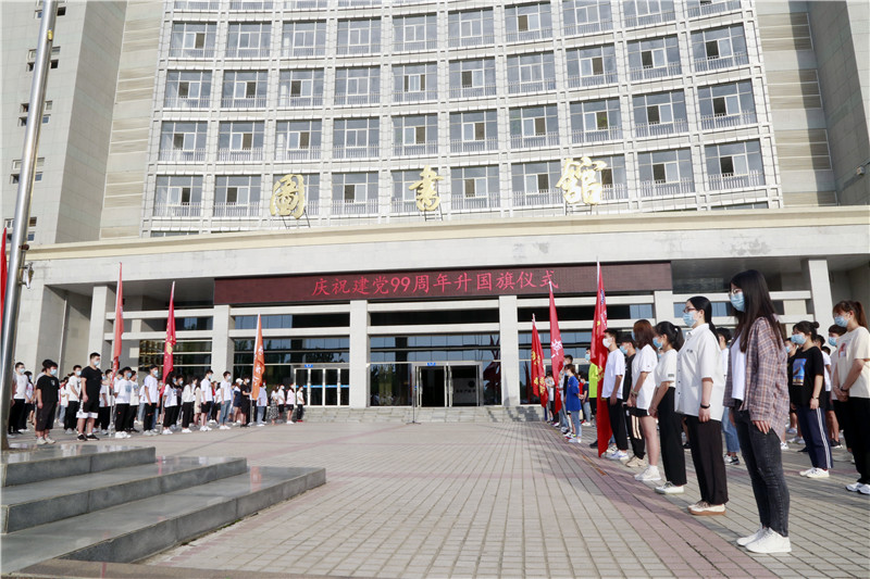 为庆祝中国共产党99周年华诞,7月1日,我校在北校区举行了庄严的升国旗仪式,副院长刘少阳在国旗下作了讲话,在校师生党员和入党积极分子参加了仪式。
