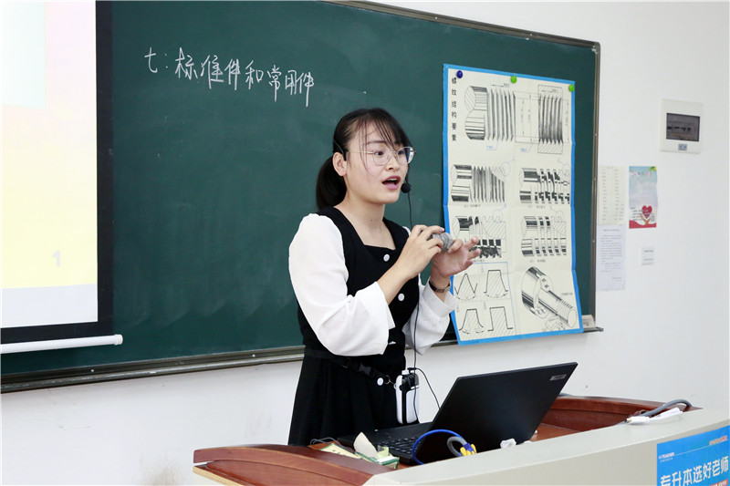 课程思政组比赛共有来计算机与软件学院、化学工程学院、基础课部等不同院部的12位教师参赛。比赛教师依据专业领域的课程特点,精心准备教学内容,灵活运用教学方法,将思想政治教育和专业知识传授融合,体现了知识传授与价值引领相统一、教书与育人相统一的课堂魅力。