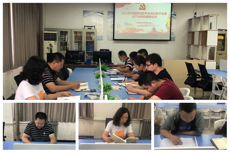 【计算机与软件学院】8月20日下午,计算机与软件学院在8-503组织开展了第四次以案促改专题学习,学习活动由党总支书记王勃主持。学习活动中,党总支书记王勃、副院长魏晓艳、周睿、高杨、戚斌等同志分别带领全体人员学习了《习近平谈治国理政》第三卷四章节、《习近平新时代中国特色社会主义思想学习纲要》三章节、省委主要负责同志在十三届省纪委四次全会上的讲话和十三届省纪委四次全会精神、栽倒在工程建设项目上的“优秀县委书记”冯振东案警示等内容,全体党员同志做好学习笔记,结合自学深入学习贯彻习近平总书记关于全面从严治党的重要论述。王勃强调,专题学习是肃清赵正永流毒和以案促改的基础工作,在学习中要以赵正永严重违纪违法案为镜鉴,深刻汲取教训,做到警钟长鸣;提高政治站位,用党的创新理论来武装头脑、指导实践、推动工作,不断增强“四个意识”、坚定“四个自信”、做到“两个维护”,确保以案促改取得实效。