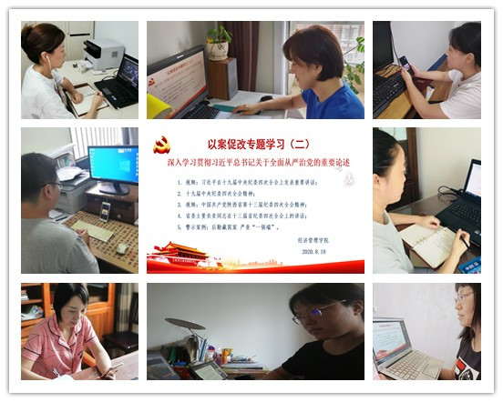 【经济管理学院党总支】8月18日,经济管理学院党总支利用腾讯会议在线平台,开展第四次“以案促改”专题学习,全体教工党员参加了学习,党总支书记王文雅主持会议。学习会上,首先视频学习了习近平总书记在十九届中央纪委四次全会上的重要讲话,王珊珊同志带领大家学习了十九届中央纪委四次全会工作报告。总书记强调,要以新时代中国特色社会主义思想为指导,全面贯彻党的十九大和十九届二中、三中、四中全会精神,一以贯之、坚定不移全面从严治党,坚持和完善党和国家监督体系,强化对权力运行的制约和监督,确保党的路线方针政策贯彻落实,为决胜全面建成小康社会、决战脱贫攻坚提供坚强保障。随后,与会人员通过观看视频学习了陕西省第十三届纪委四次全会精神,并由闫应召同志领读了《省委主要负责同志在十三届省纪委四次全会上的讲话》。省委书记胡和平在会议上强调,要坚决全面彻底肃清赵正永、陈国强流毒和恶劣影响,深入开展警示教育,引导广大党员干部知敬畏、存戒惧、守底线。要聚焦重点领域反腐,严肃查处不收敛不收手的违纪违法问题,巩固发展反腐败斗争压倒性胜利。以顽强意志推进新时代全面从严治党,不断强化对权力运行的制约和监督,为陕西追赶超越发展、决胜全面建成小康社会提供坚强保障。最后,王文雅同志通过介绍西安电子科技大学陈勇、张培营后勤腐败“窝案”,向全体党员提出警示:前车之覆,后车之鉴,这些活生生的案例已经为我们敲响了警钟,应该引起我们的高度重视。希望全体党员干部以案为鉴,深刻汲取高校系统违纪案件教训,坚守初心使命,严守政治纪律和政治规矩,不断增强政治定力、纪律定力,把“四个意识”转化成听党指挥,为党尽责的实际行动。