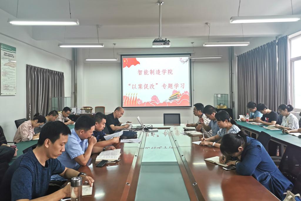 【智能制造学院党总支】2020年9月1日下午,智能制造学院党总支在10-305开展第五次“以案促改”专题政治理论学习,学院党政领导和全体党员参加了会议。会议由智能制造学院党总支书记白福民主持。会上,白福民同志宣读了此次专题学习工作安排,沈博同志领学了《习近平谈治国理政》第三卷中“积极发展社会主义民主政治”章节内容,李俊涛同志领学了《习近平总书记关于教育的重要论述》中“四有好老师”章节内容,白福民同志领学了《陕西省委常委会(扩大)会议传达学习习近平总书记来陕考察重要讲话指示精神》,全体党员集体观看了《习近平总书记来陕考察》新闻视频。最后,白福民同志带领大家共同学习了《中共18新利苹果客户端委员会关于做好基层党组织换届选举工作的通知》和《第三次纪律教育宣传月活动》文件精神,并向党员同志传达相关文件要求。