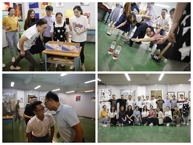 【艺术与设计学院】为庆祝第36个教师节的到来,增强艺术学院教职工的凝聚力,展现教职工真我风采,活跃校园文化生活,艺术学院于9月9日下午在13-306画室举办了庆祝第36个教师节座谈会暨趣味游戏活动。分院全体教职工参加活动,活动由数字媒体教研室主任房强主持。座谈会上,分院长管阳向全体教师送上节日祝福,总结学院近年来取得的成绩,对大家为学院发展做出的贡献表示感谢。教师们围绕“促进学院发展 砥砺前行”、“不忘教书育人初心,争做四有好老师”主题,就如何进一步促进学院发展、培养高尚的师德师风,如何树立先进的教育观、全面的价值观、正确的人才观做了积极发言,感慨学院能取得如今的成绩离不开学校领导的支持,离不开全体教职工的努力。座谈会结束后,进入教职工趣味游戏活动环节。活动共有四个项目,分别是你来比划我来猜、面粉传递、团队取水和吹球比赛。活动现场热闹非凡,无论是老教师,还是刚加入艺术与设计学院大家庭的青年教师,个个精神饱满,行动敏捷,大家全力投入、团结协作、配合默契,加油声、欢笑声不绝于耳。活动在大家的欢声笑语中圆满结束。党总支书常继红为教职工们送去节日寄语,希望大家不忘初心,牢记教书育人使命,凝心聚力为学院和学校的发展贡献力量,以优异的成绩为学校双高建设贡献自己的力量,奋力谱写学校新时代追赶超越新篇章。
