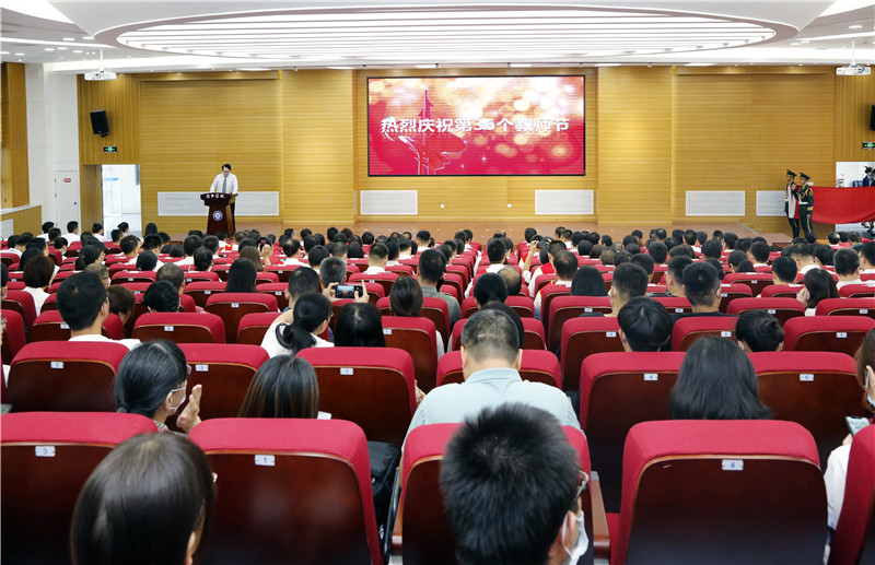 硕果盈枝,春华秋实。在这收获金色的美好时节,18新利苹果客户端全体教师和教育工作者迎来了第36个教师节。9月10日下午,我校在北校区教四楼报告厅隆重召开了庆祝第36个教师节暨表彰大会,共庆属于教师自己的节日。全体校领导出席表彰大会,学校中层以上领导干部、全体教职工以及离退休职工代表、学生代表等共500余人参加了大会。表彰大会由副院长全卫强主持。