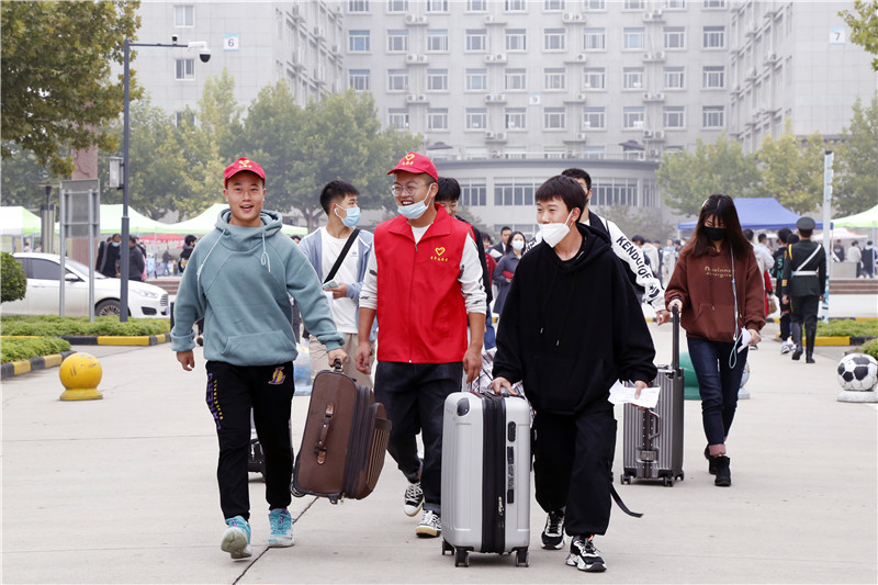 为切实做好常态化疫情防控条件下新生入学报到工作,学校认真贯彻应对新冠肺炎疫情防控的相关要求,做好秋季学期开学工作的具体安排,统筹做好疫情防控和新生入学报到工作。受疫情影响,今年的报到时间、流程与往年有所不同。测量体温、扫健康码、搬运行李、一站服务,学校各部门、各学院用迎新“一条龙”服务给小“20”们留下了良好的初印象。