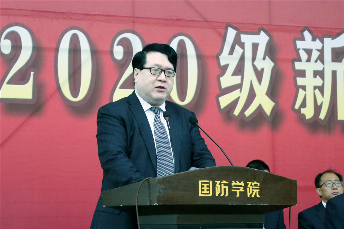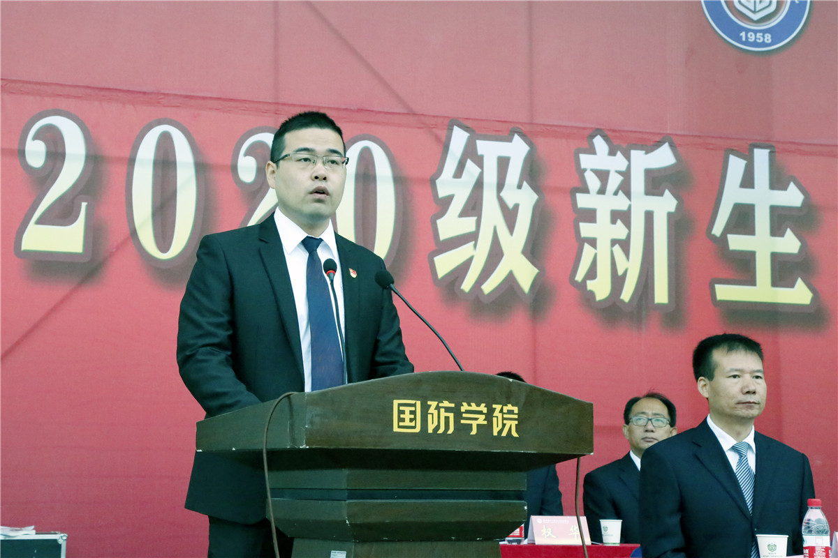 军训团团长韩文涛对参训师生提出了要求和希望,强调了国防教育的重要性以及军训的意义,并给各营授旗。副院长全卫强宣读了2020级新生入学工作安排。
