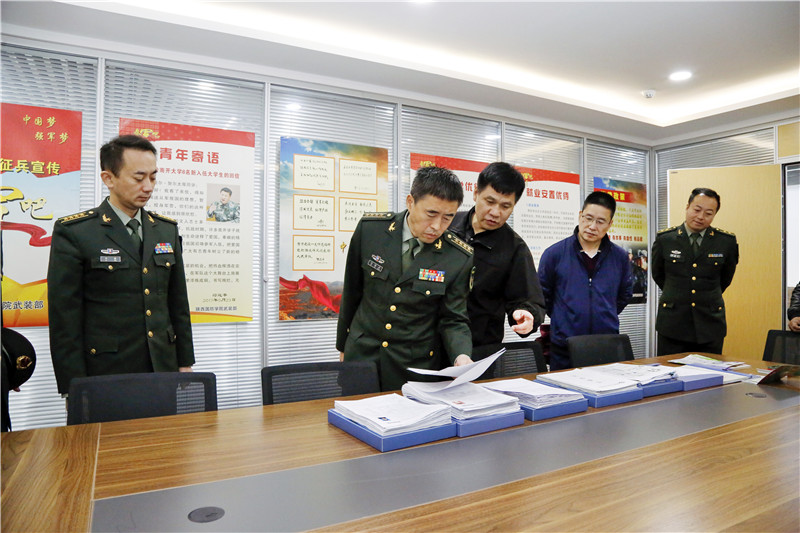 10月15日上午,省军区动员局马海兵局长、谷星林副局长,警备区副司令员吕森,陕西省教育厅学生处调研员白炀,鄠邑区武装部部长李刚等大学生征兵工作调研组一行7人调研检查我校大学生征兵工作。