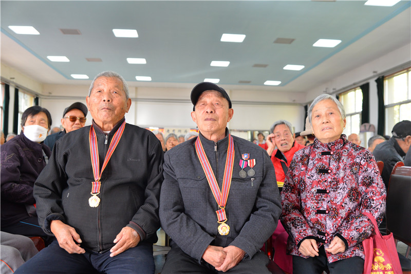 在茶话会上,张卫平书记、杨静妮副主任分别向抗美援朝志愿军老战士上官定禄和杨兆富颁发了纪念章。上官定禄同志1951年参加抗美援朝志愿军,立三等功1次,其爱人李引莲同志1957年赴朝鲜从事军队后勤保障。杨兆福同志1956年参加抗美援朝志愿军,1959年参加西藏平叛。