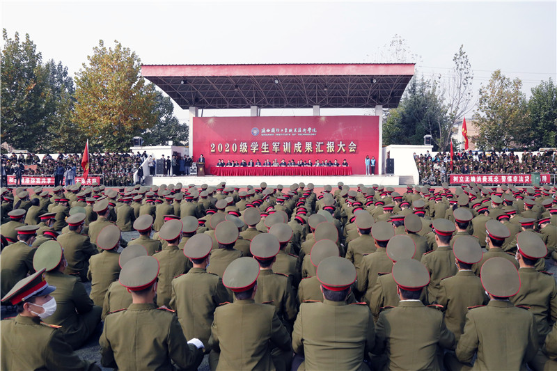 风和日丽,秋高气爽。10月25日上午,我校2020级新生军训成果汇报大会在北校区田径运动场举行。2020级全体新生用昂扬的热情、高昂的斗志、英姿飒爽,迎来成果检验。学校党委书记张卫平,校长刘敏涵,党委副书记、纪委书记王明哲,党委副书记杨聪,副校长、全卫强、张永军、孟繁增,军训团团长韩文涛出席大会,学校相关单位负责人、全体军训教官和2020级新生参加汇报大会。