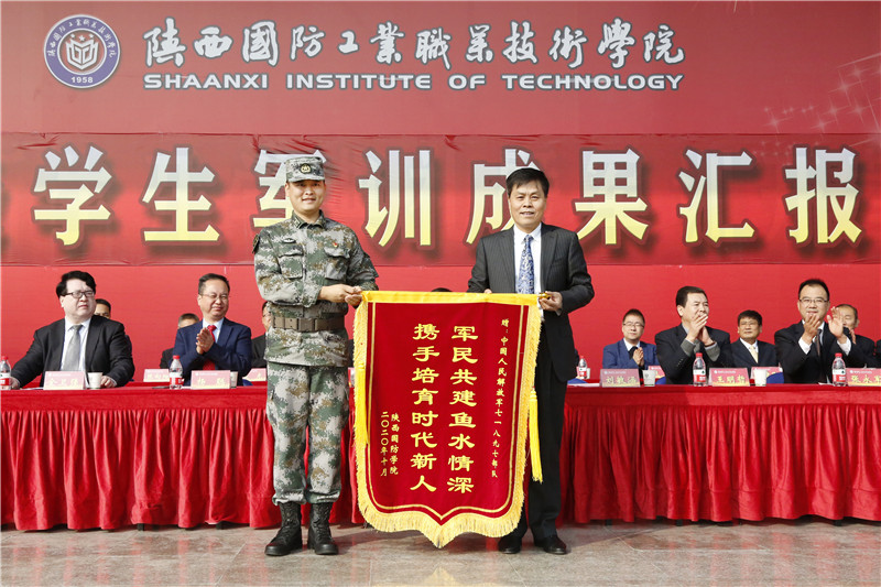 校长刘敏涵向军训团团长韩文涛同志赠送了锦旗,表达了对承训部队大力支持和教官们辛勤付出的感谢。
