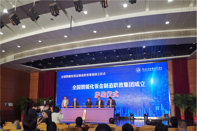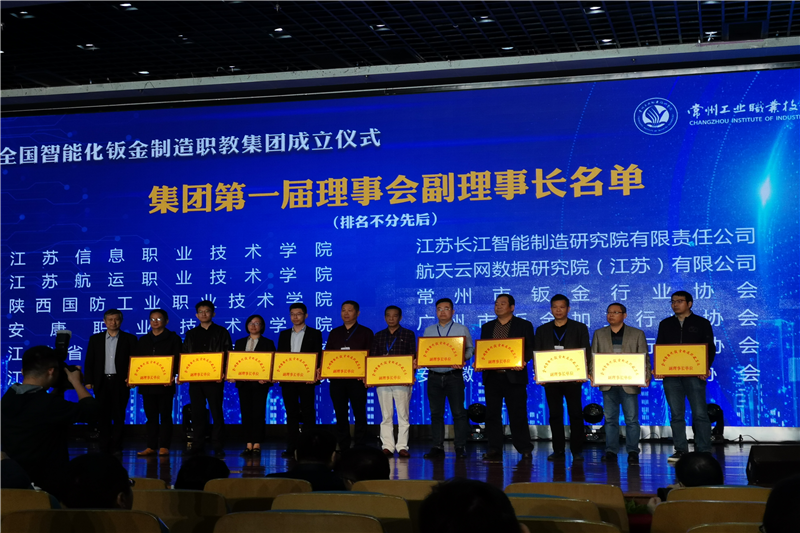为加速职业教育规模化、集约化、连锁化发展进程,促进校际联合与校企合作,推进全国钣金智能制造及智能装备产业发展,经过中国锻压协会批准,全国智能化钣金制造职业教育集团成立仪式暨钣金数字化5G平行示范工厂揭牌仪式于2020年10月29日-10月30日在常州工业职业技术学院举行。来自全国12个省、23个市的4家央企科研院所,28家企业,10家地方钣金行业协会,35家本科、高职院校的200余名领导、专家参会。
