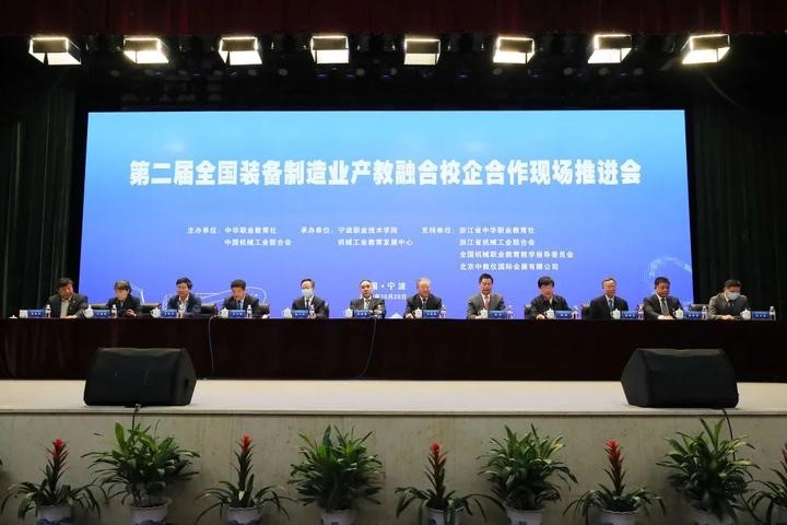 2020年10月28日-29日,由中华职业教育社、中国机械工业联合会联合主办的第二届全国装备制造业产教融合校企合作现场推进会于在浙江省宁波职业技术学院隆重召开。全国政协副主席、中华职业教育社副理事长辜胜阻,中国机械工业联合会会长王瑞祥,浙江省政协副主席、省中华职业教育社主任陈小平,教育部职成司副司长谢俐等领导出席会议。开幕会由中华职业教育社党组书记、总干事方乃纯主持。我校副校长孟繁增及智能制造学院相关负责人参加会议。