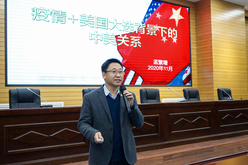 12月1日下午,孟繁增副校长应邀在教四报告厅作了《疫情+美国大选背景下的中美关系》的专题讲座,马克思主义学院常务副院长吴娟主持了讲座。