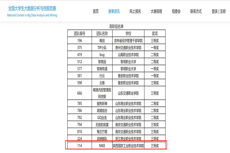 12月5日,由中国电子学会主办,北京邮电大学高校承办的2020年第四届全国大学生大数据分析与挖掘竞赛全国总决赛在北京顺利开幕。由经济管理学院孟华敏老师指导的“NIKE”团队以“大数据时代下电商平台产品销售分析与预测研究”为参赛项目课题,最终电子商务319级党倩倩、陈晓红和张亚娟等三名同学发挥出色,荣获全国总决赛高职组三等奖,并获得奖金1000元。