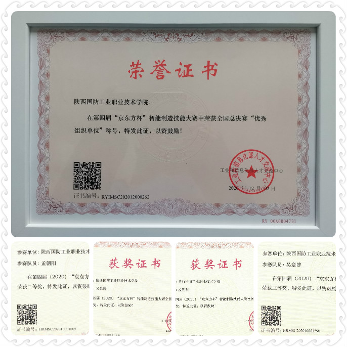 近日,第四届(2020)“京东方杯”智能制造技能大赛颁奖典礼在北京举行,我校获优秀组织单位、优秀指导教师5名、二等奖1项和三等奖3项等荣誉,该赛项由工业和信息化部人才交流中心主办,京东方科技集团股份有限公司(BOE)冠名承办。我校智能制造学院副书记兼副院长沈博、教学科长王新海等参加了颁奖典礼。