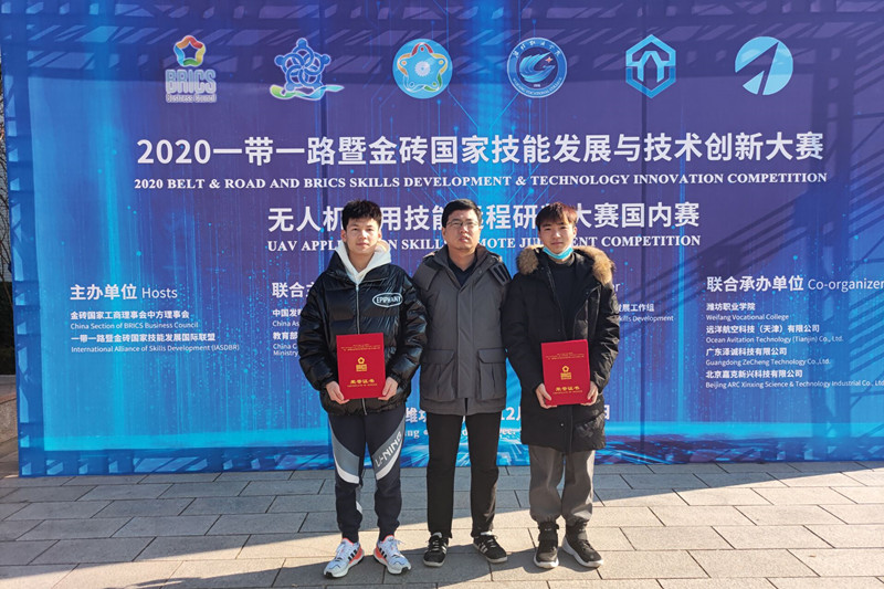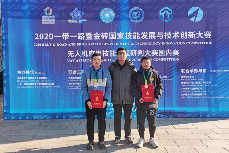 2020一带一路金砖国家技能发展与技术创新大赛之无人机应用远程研判大赛国内赛决赛于12月16日至19日在山东潍坊举行。我校人工智能学院石宝刚老师指导4名学生参赛,历经近半年的艰苦备战,通过预赛的层层选拔,成为陕西省参加决赛的高校团队之一。在国赛现场决赛的比赛中,他们凭借扎实的操控基本功和稳定的发挥,最终获得三等奖1项,优秀奖1项。