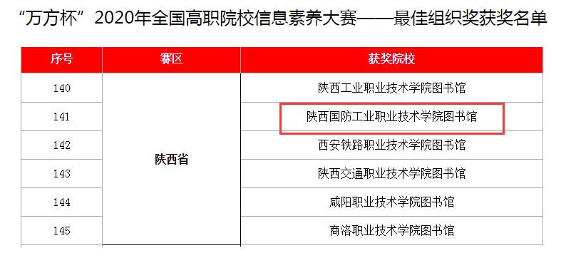由教育部高校图工委高职高专院校分委员会和高等教育文献保障系统(CALIS)管理中心共同主办的2020年全国高职高专院校信息素养大赛圆满落幕。经过激烈竞争,我校图书馆老师任天娟在全国教师微课赛总决赛中获得“一等奖”,我校因组织得力参赛积极,荣获“最佳组织奖”。