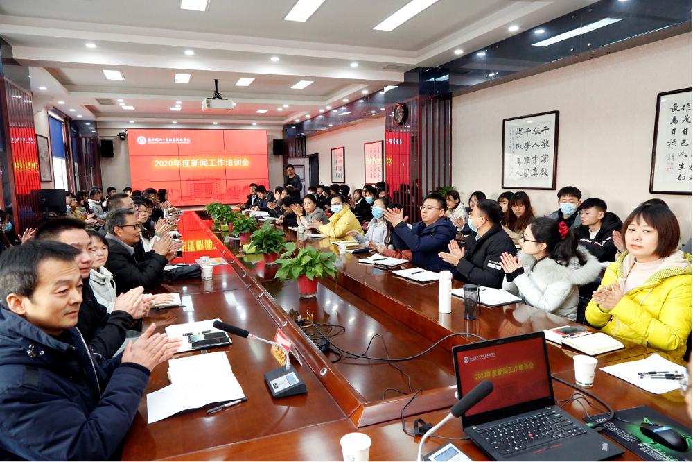 为进一步提高全校新闻宣传工作者、通讯员、信息员的业务能力和专业素养,全面打造一支高素质的新闻宣传工作队伍,切实提高我校宣传工作水平,12月23日下午,我校在北校区图书馆第一会议室召开了2020年度新闻工作培训会议,特邀中国青年报陕西记者站站长黄博作讲座。各分院部信息员教师,校学生会、团委、新媒体中心、广播站、国防展馆学生代表,以及新闻爱好者参加了培训会。会议由宣传部部长杨建伟主持。