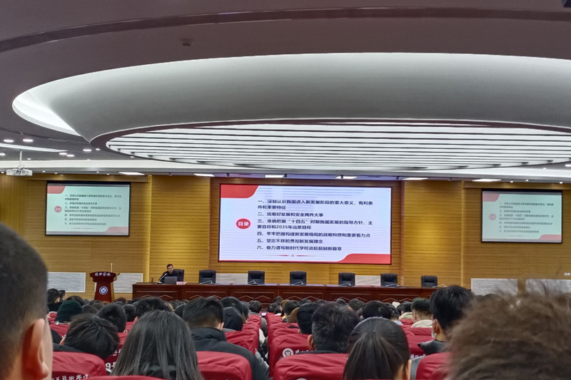 为深入学习贯彻党的十九届五中全会精神,校党委副书记、纪委书记王明哲同志于2020年12月23日下午,在教四报告厅举行党的十九届五中全会精神宣讲报告会,建筑与热能工程学院和机械工程学院全体教师及学生代表听取了报告。
