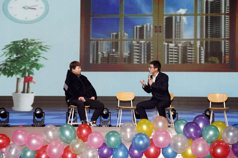 健美操《Queen Adult》拉开了晚会序幕,在欢快热烈的节奏中燃起晚会的气氛,上下五千岁月似流沙不枉魂魄入华夏,一曲《华夏》现场燃爆,古典舞《蒹葭》舞姿优美,生动活泼,她们从从书卷里走来,轻盈漫步,如画如春。诠释了“蒹葭苍苍,白露为霜。所谓伊人,在水一方。”相声《我爱我校》展现了学生们爱国爱校的情怀。毕业班学生庞坤同学一首《勿忘心安》高音大获好评其唱功获大众承认。唐瑞林老师二胡演奏的《大鱼》空灵缥缈,音乐时而清幽明朗,时而黯然深沉,将观众带入了一个明净的世界,尽显中华民乐之美。刘倩老师现场版《我不想说》,经典传唱,旋律优美。王志刚老师的《两地曲》,展示了男高音的风采,颇具艺术感染力。全体辅导员自编自导的手影舞《遇见》,通过变化不同的队形“树”“笑脸”“心”“LOVE”“人”等表达他们对新年的祝福,两院领导朗诵的《新时代 新梦想 新辉煌》将晚会推向了最高潮。
