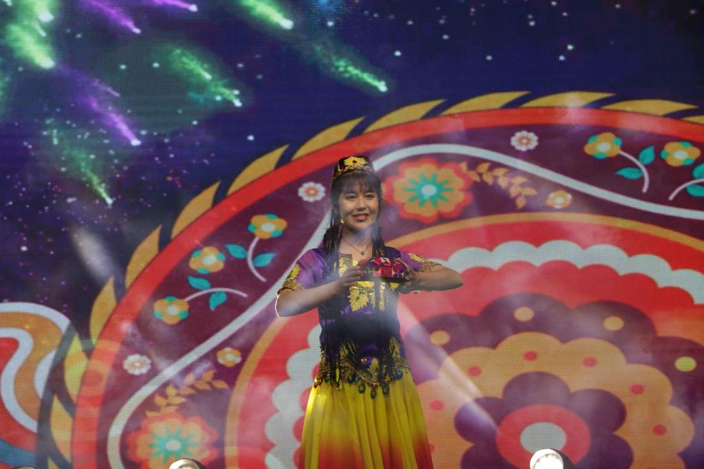 19:28分,盛典在开场舞《中华手拉手 民族大联欢》中正式拉开帷幕,现代舞、傣族舞、回族舞、新疆舞、藏族舞伴随着欢乐的音符相继上台,瞬间点燃了现场的气氛。舞者曼妙的舞姿将各民族风采展现的淋漓尽致,民族文化在这里交流互鉴,书写民族团结的诗篇,共奏民族团结友爱的华彩乐章。