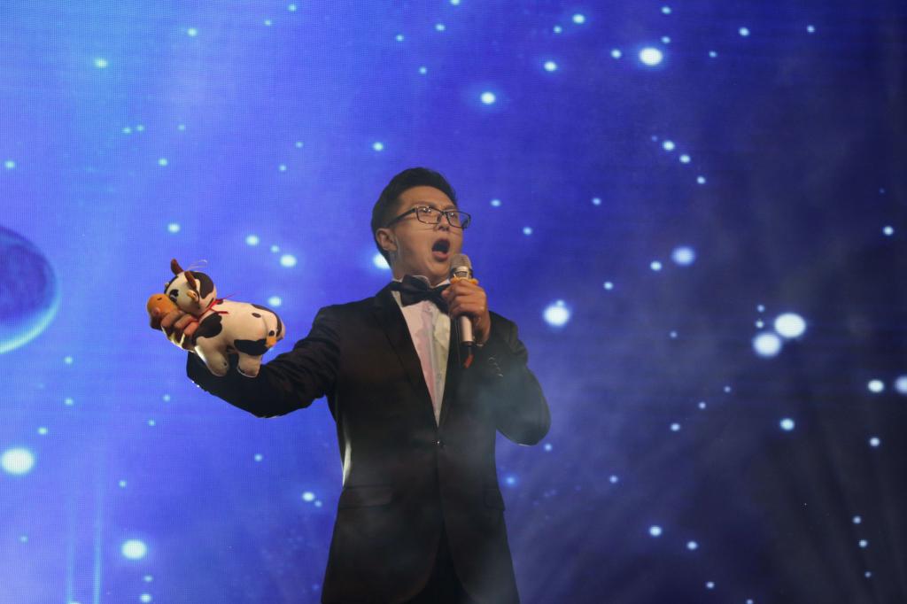 随后6位主持人走上舞台,对到场的各位领导、老师、同学们表示热烈的欢迎。王明哲发表了新年贺词,代表学校向认真履职、辛勤工作的各位老师和可爱的同学们送上新年的美好祝福和期望。
